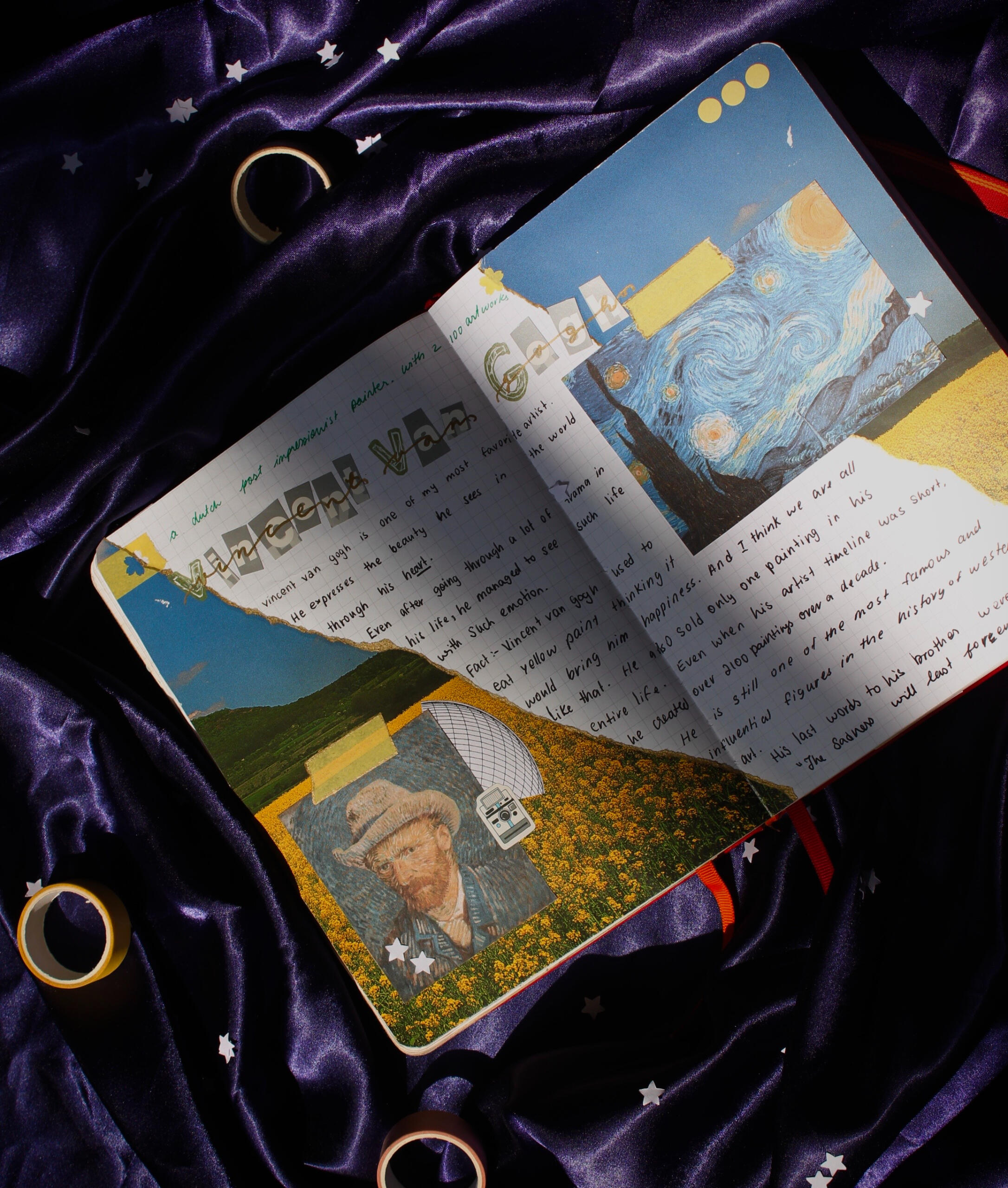 Welcome to my favourite section!!My journal offers a cozy corner to weave my designs, reflections and photography together.Vincent Van Gogh, a personal favorite and a heart-stealer for millions, left an indelible mark on the art world in a brief but brilliant career. His legacy teaches us the virtues of kindness, patience, and self-love, illuminating our paths with his enduring influence on modern art.